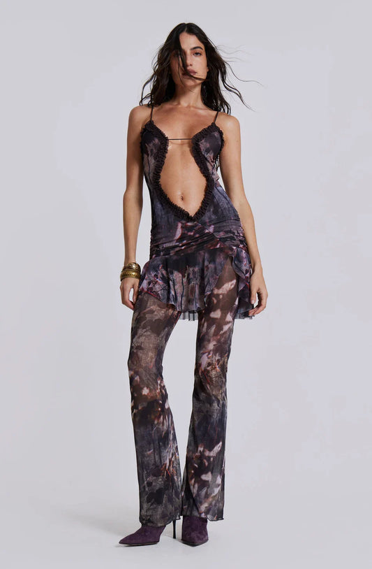 Ariana Vacation V-Neck Auricular Printed Chiffon Top