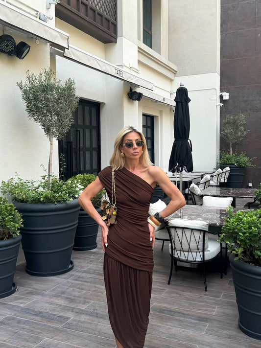 Astrid Stripe Asymmetrical Maxi Bandage Dress
