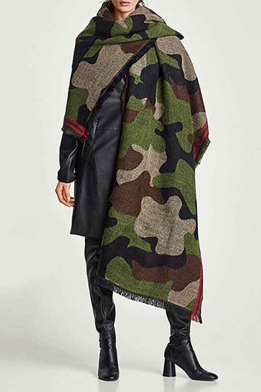 Fashion Camouflage Print Tassel Split Joint Scarf
