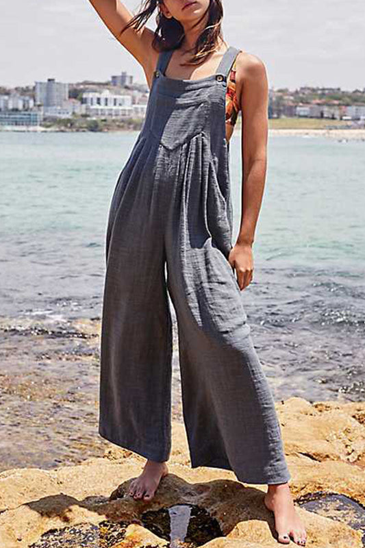 Fashion Casual Solid Without Belt Spaghetti Strap Loose Jumpsuits(3 colors)
