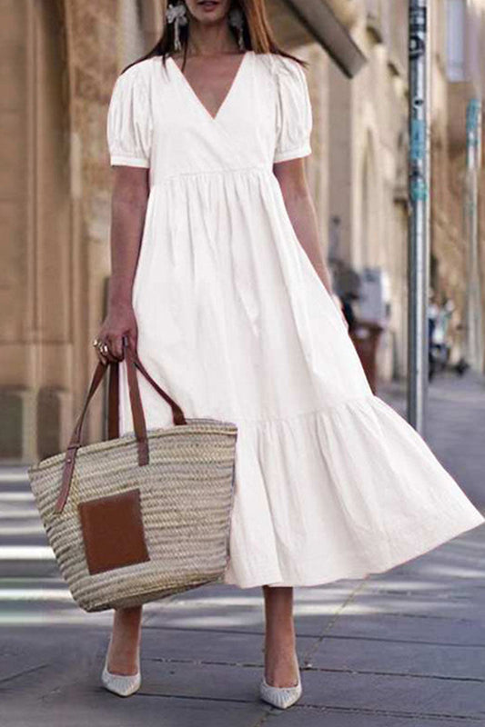 Fashion Casual Solid Split Joint V Neck Princess Dresses