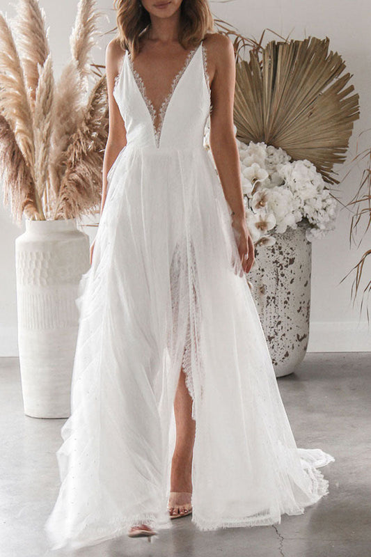 Fashion Sexy Solid Patchwork V Neck Princess Dresses