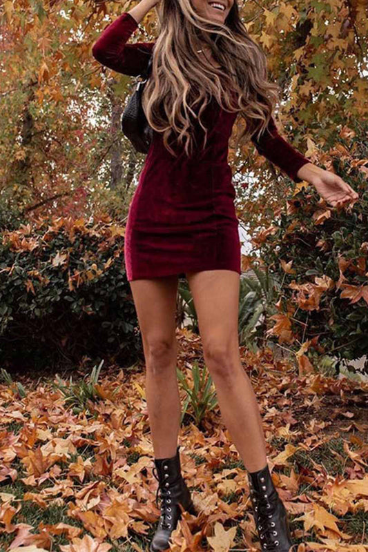 Fashion sexy slim V-neck solid color short-sleeved dress