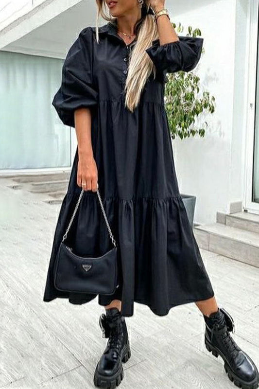 Fashion Street Solid Turndown Collar Princess Dresses(3Colors)