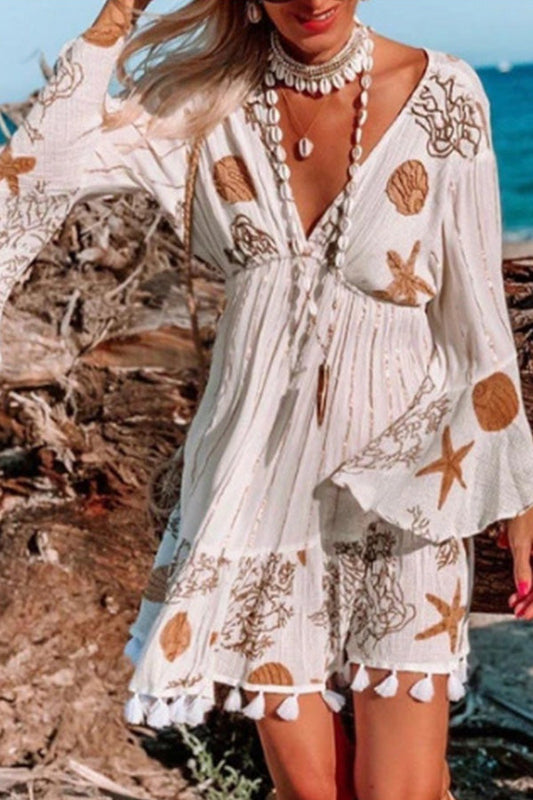 Fashionable Elegant V Neck Printed Party / Vocation Layered Dress