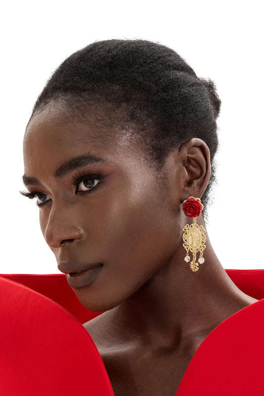 Faux Diamond Cameo Rose Shape Drop Earrings