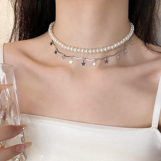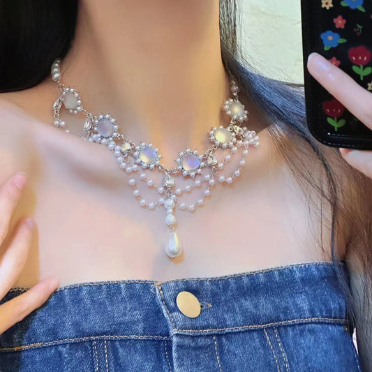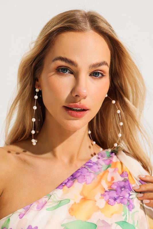Faux Pearl Faux Diamond Tassel Drop Earrings