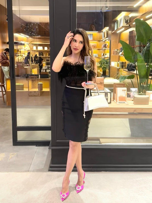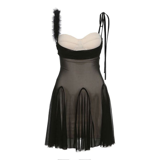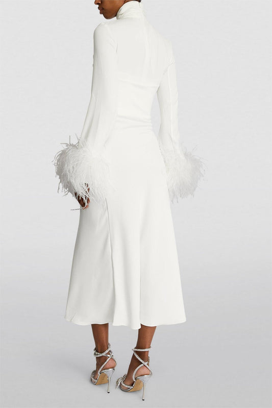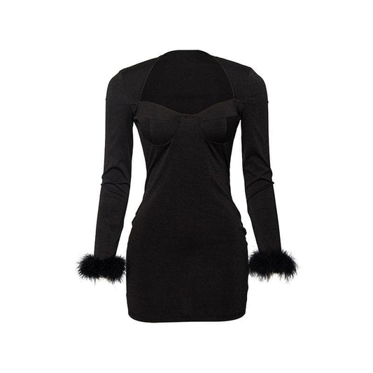 Feather crewneck contrast print long sleeve mini dress-final-sale