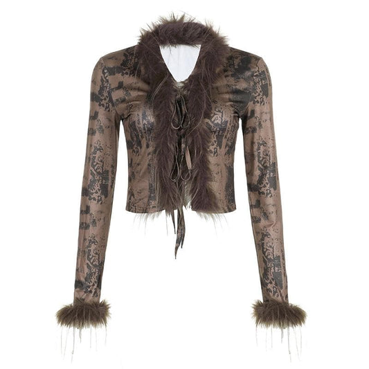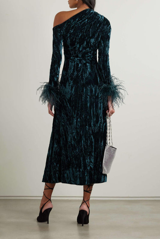 Feather Cuffs Bell Bottom Velvet Splice Jumpsuit