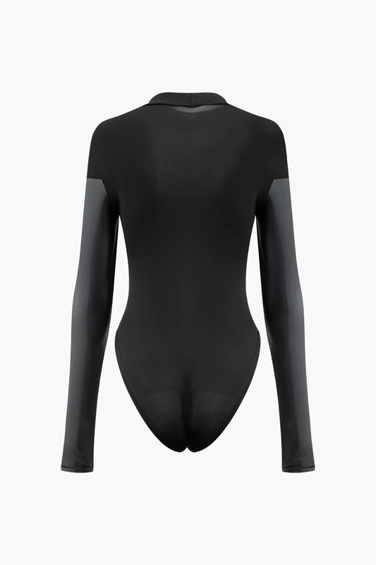 Felixa Black Faux Leather Paneled Long Sleeve Bodysuit