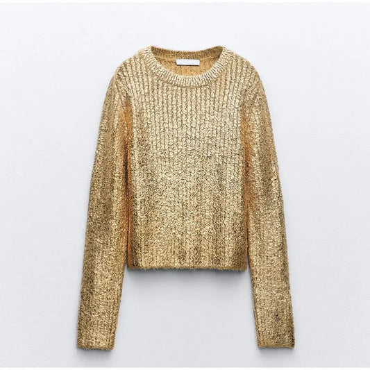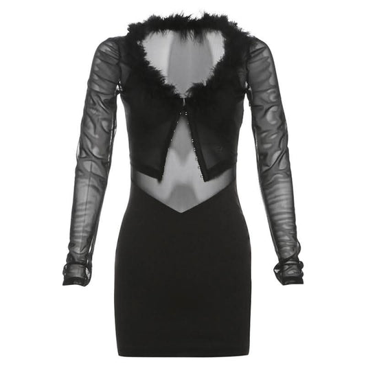 Feather-Paneled Long Sleeves Bell Bottoms Sequin Jumpsuit