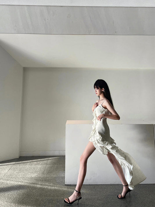 Asymmetrical Ruffle Backless Long Dress