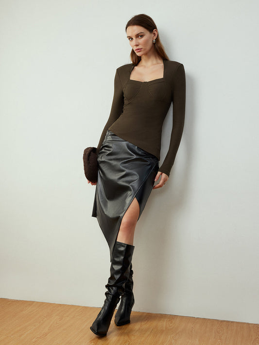 Asymmetrical PU Leather One-Shoulder Top
