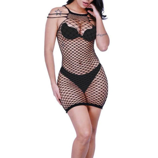 Fishnet solid strappy open cup tank mini dress