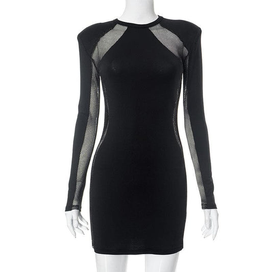 Fishnet solid long sleeve patchwork irregular mini dress
