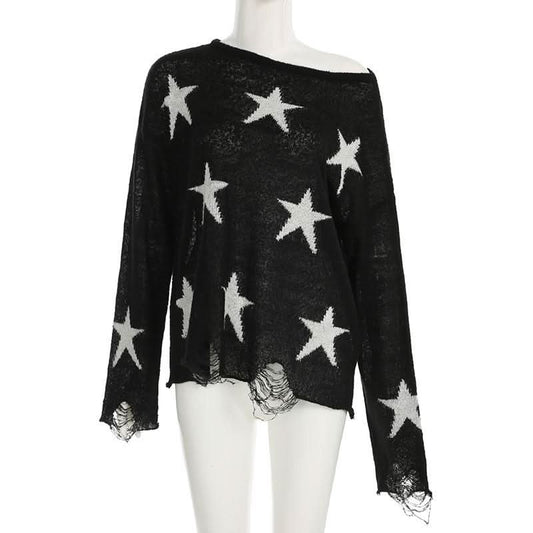 Five-pointed star pattern long sleeve sweater top
