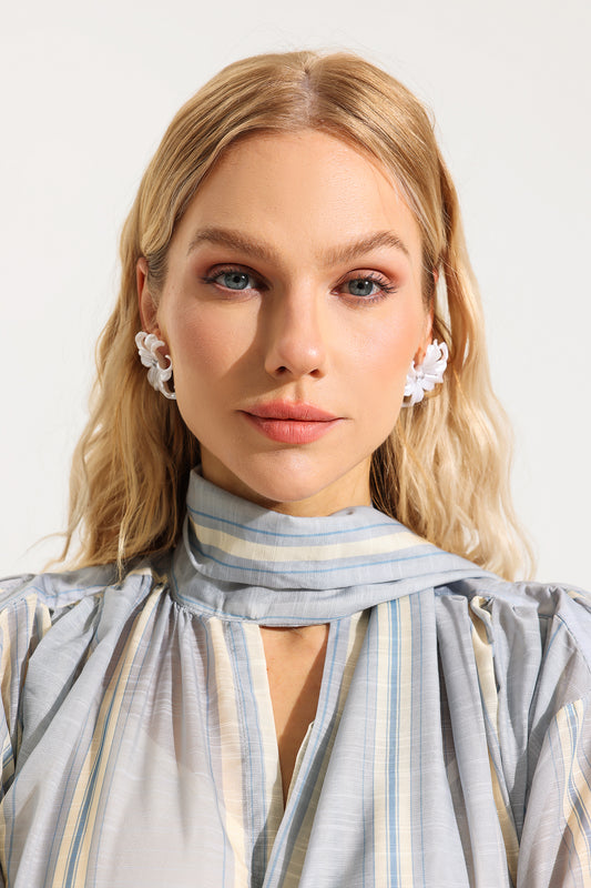Floral Feathers Turndown Collar Long Sleeve Two Pieces