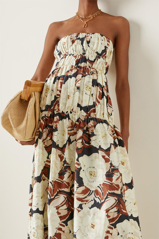 Floral Frill Sweetheart Neck Sleeveless Maxi Dress