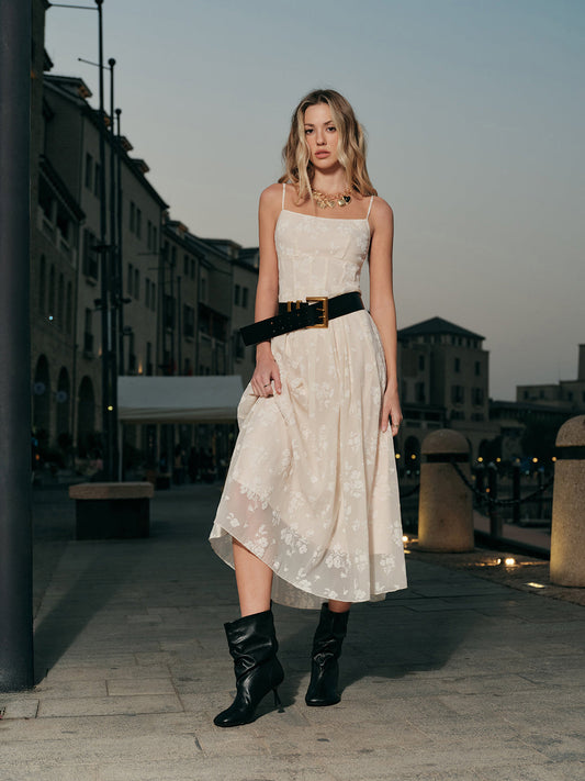 Floral Lace Belt Bodice Midi Dress