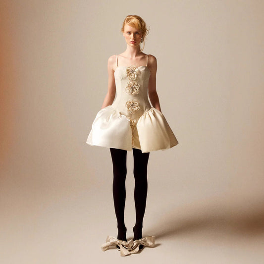 Floral Jacquard Bow Straps Dress