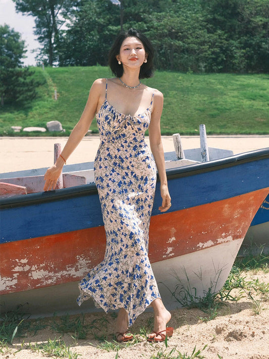 Floral Long Sleeve V-Neck Ruffle Maxi Dress