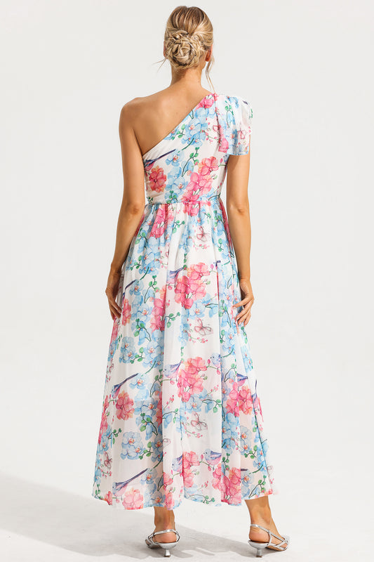Floral One-Shoulder Cut-Out Slit Maxi Dress
