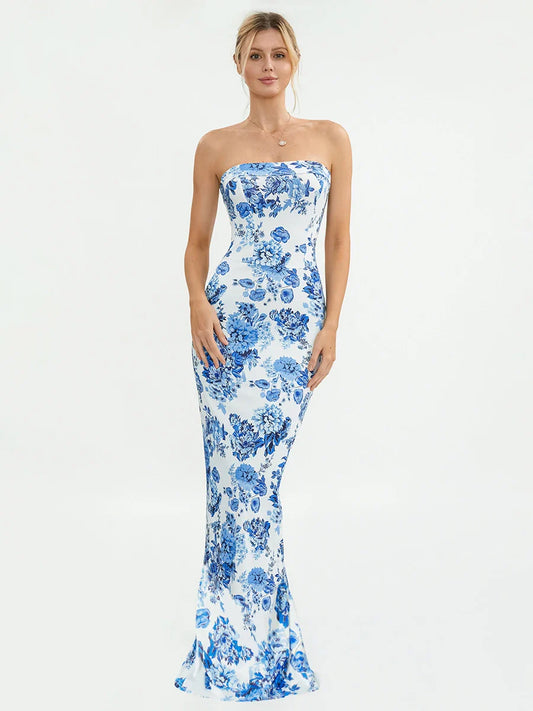 Floral Off-Shoulder Tube Bandeau Slit Bodycon Beach Holiday Floral Dress