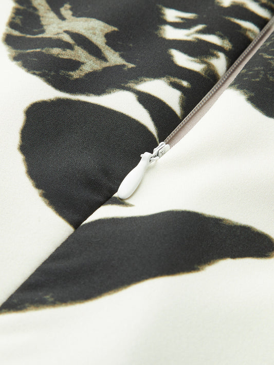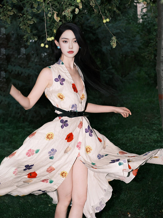 Floral Print Sleeveless Backless Mesh Tulle Dress