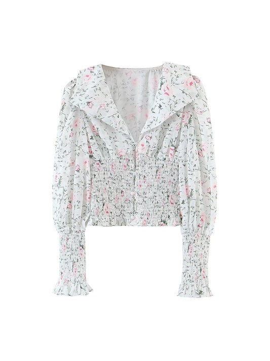 Floral Print Smocked Lantern Sleeve Shirt Top
