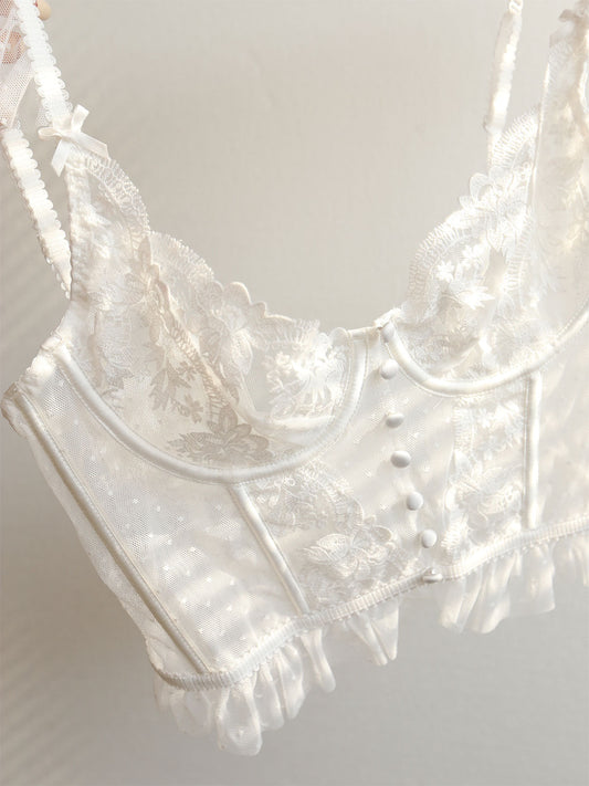 Floral Sheer Lace Mesh Corset Crop Top