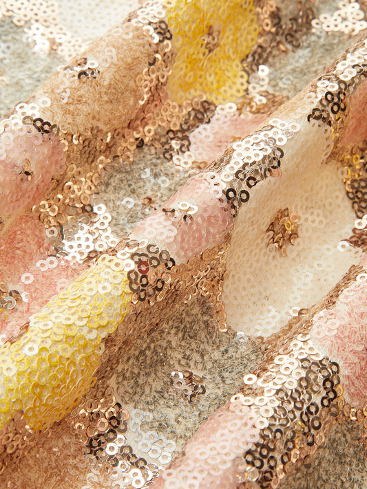 Floral Sequins Zipper Mini Skirt