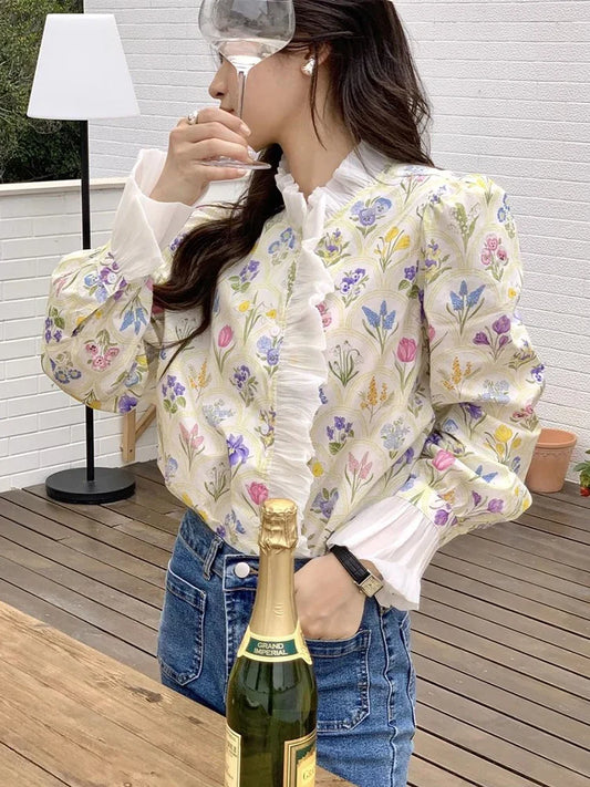 Floral Ruffled Flare Sleeve Blouse