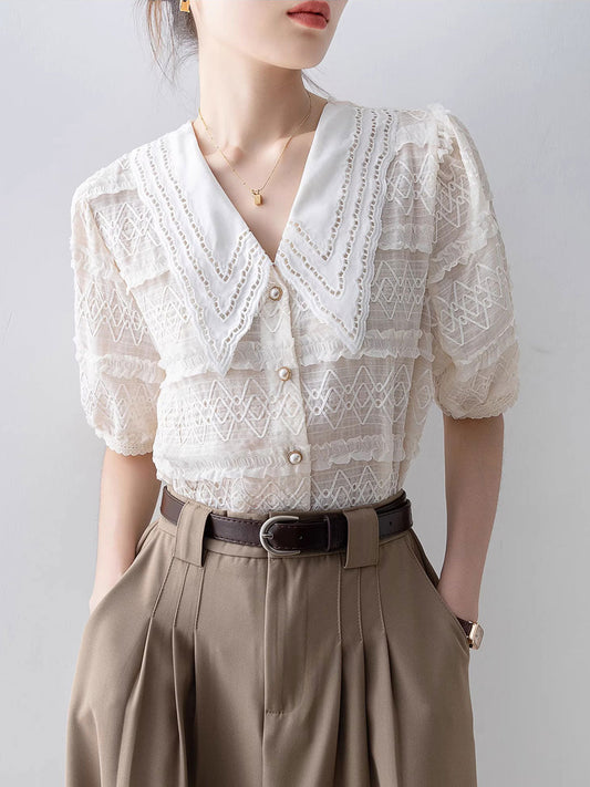 Audrey Vintage Doll Collar Lace Blouse