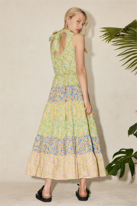 Floral Sweetheart Neck Sleeveless Midi Dress