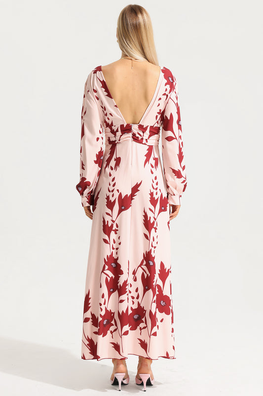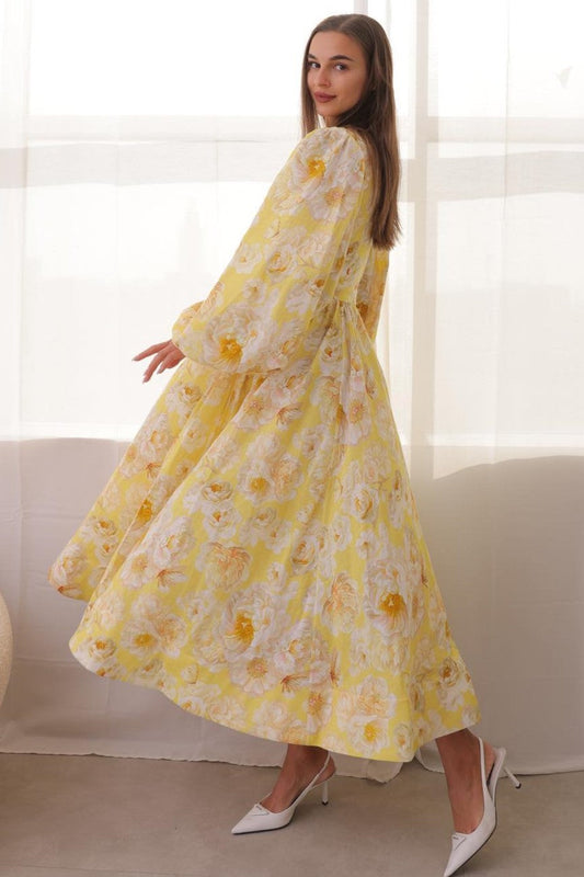 Floral V-Neck Lantern Sleeve Maxi Dress
