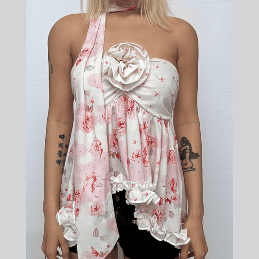 Flower applique ruffle irregular cami top