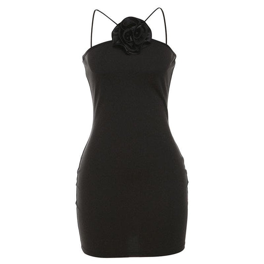 Flower applique solid sleeveless backless mini dress