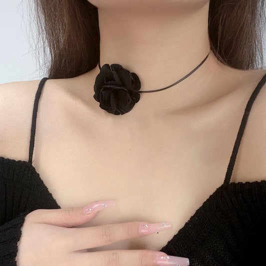 Flower applique self tie choker necklace