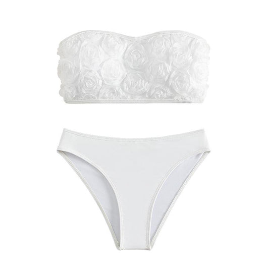 Flower applique solid tube bikini swimwear