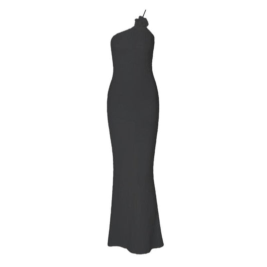 Flower applique solid backless ribbon slit tube maxi dress