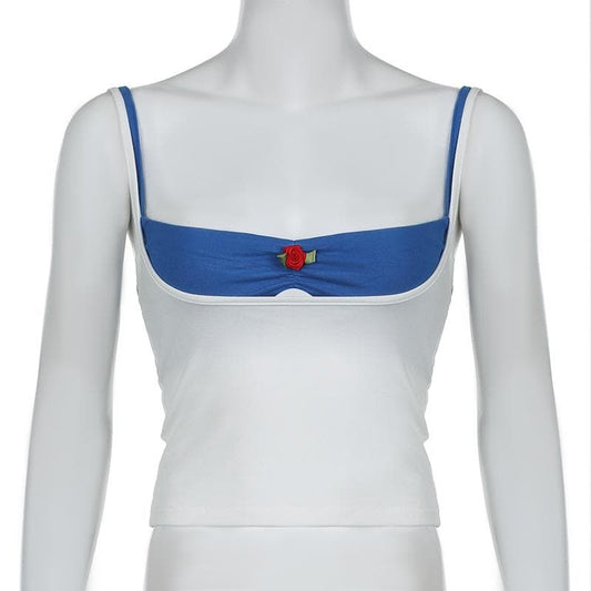 Flower applique ruched 2 piece cami top