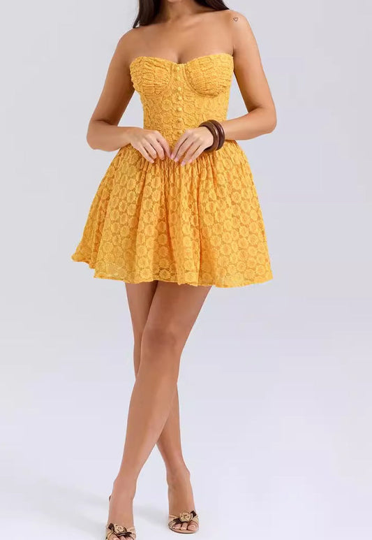 Flower Embroidery Flowy Ruched A-Line Floral Dress