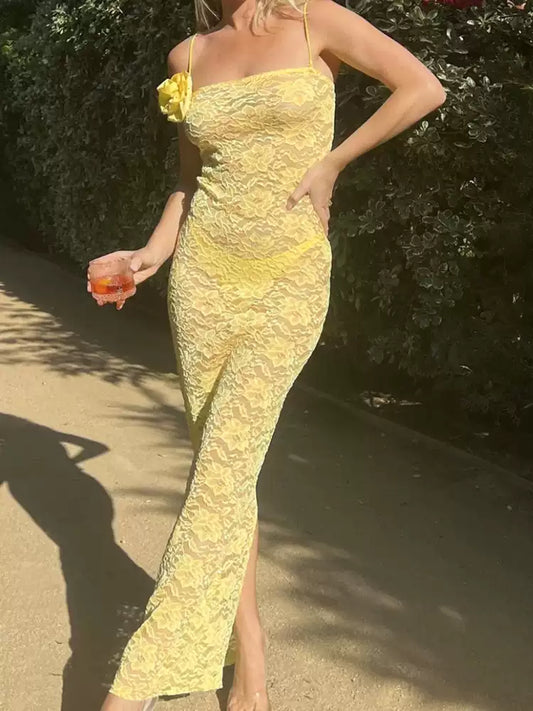 Flower Lace Mesh Strappy Fishbone See-Through Top