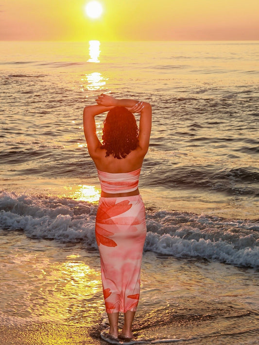 Flower Printed Off-Shoulder Slim Beach Long Floral Dress