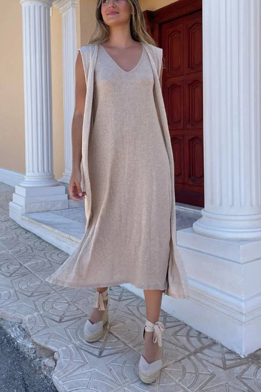 Flutter Sleeve V-Neck Slit Maxi Dress
