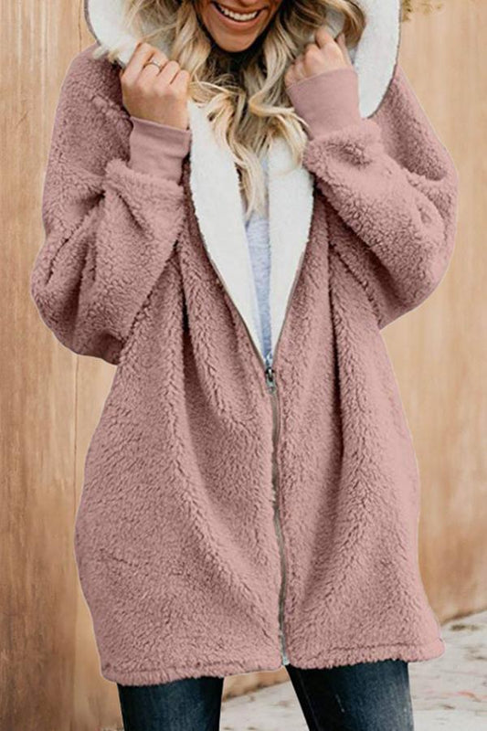 Fluffy patchwork solid long sleeve self tie top-final-sale