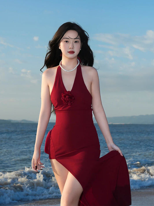 French Three-Dimensional Flower Ribbon Halter Neck Strapless Vest