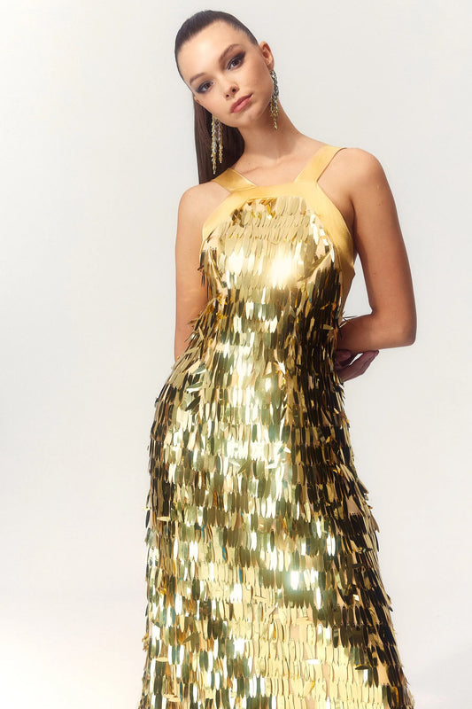 Geraldine Halter Backless Sequin Maxi Dress
