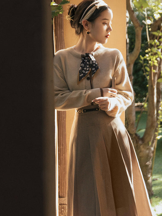 Aurora Vintage Crew Neck Cotton knitted Cardigan