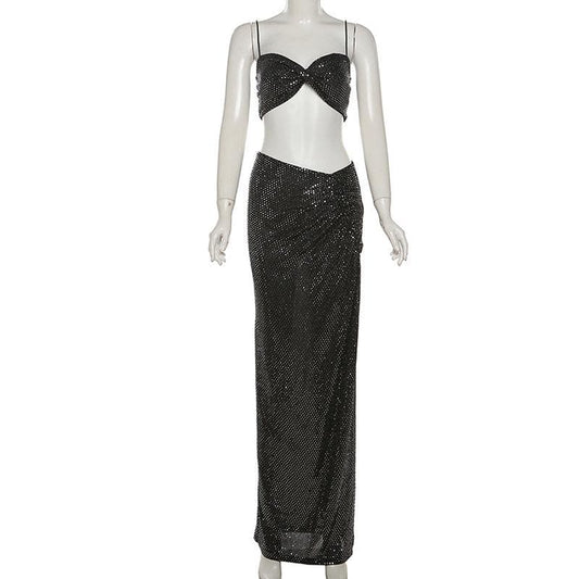 Glitter Mesh Rhinestone Nightclub Party Prom Dress